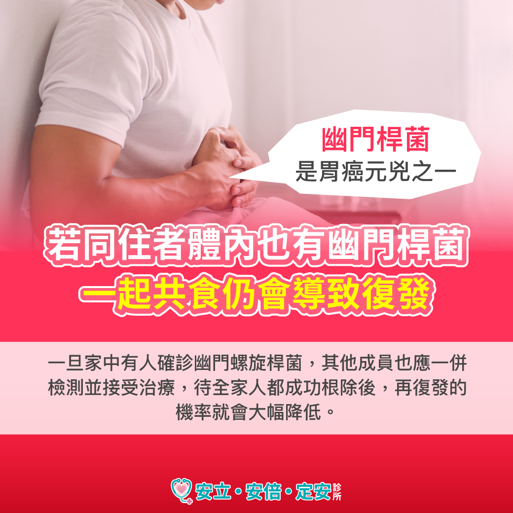 若同住者體內也有幽門桿菌,一起共食仍會導致復發